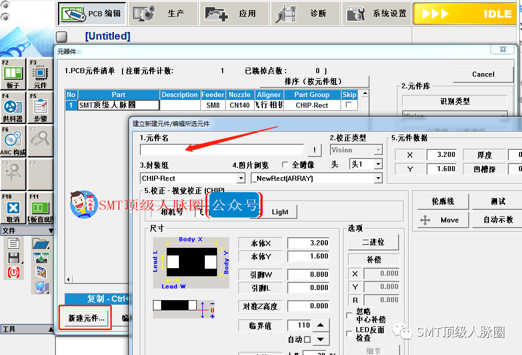8.程序步驟,輸入要貼位置的名稱(pcb位號),示教坐標、輸入角度、貼裝的元件。