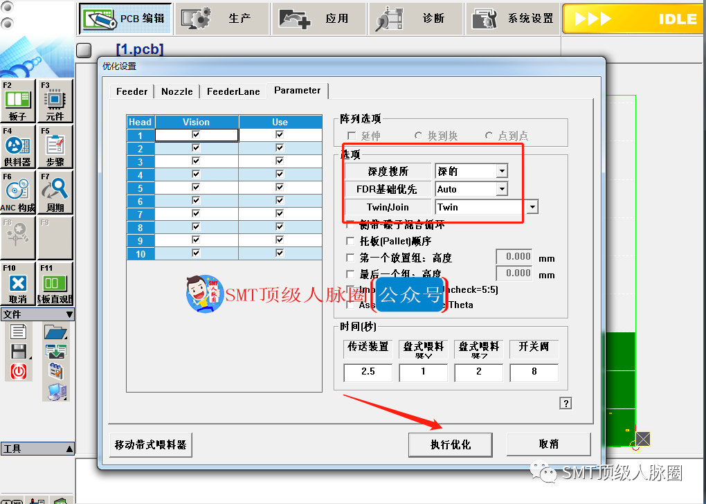 9.程序優化,優化之前把元件要用的飛達類型、供料間距、吸嘴調好,點優化后系統會提示你保存,保存到你想存的文件夾后設置飛達數,執行優化,優化好后點接受。